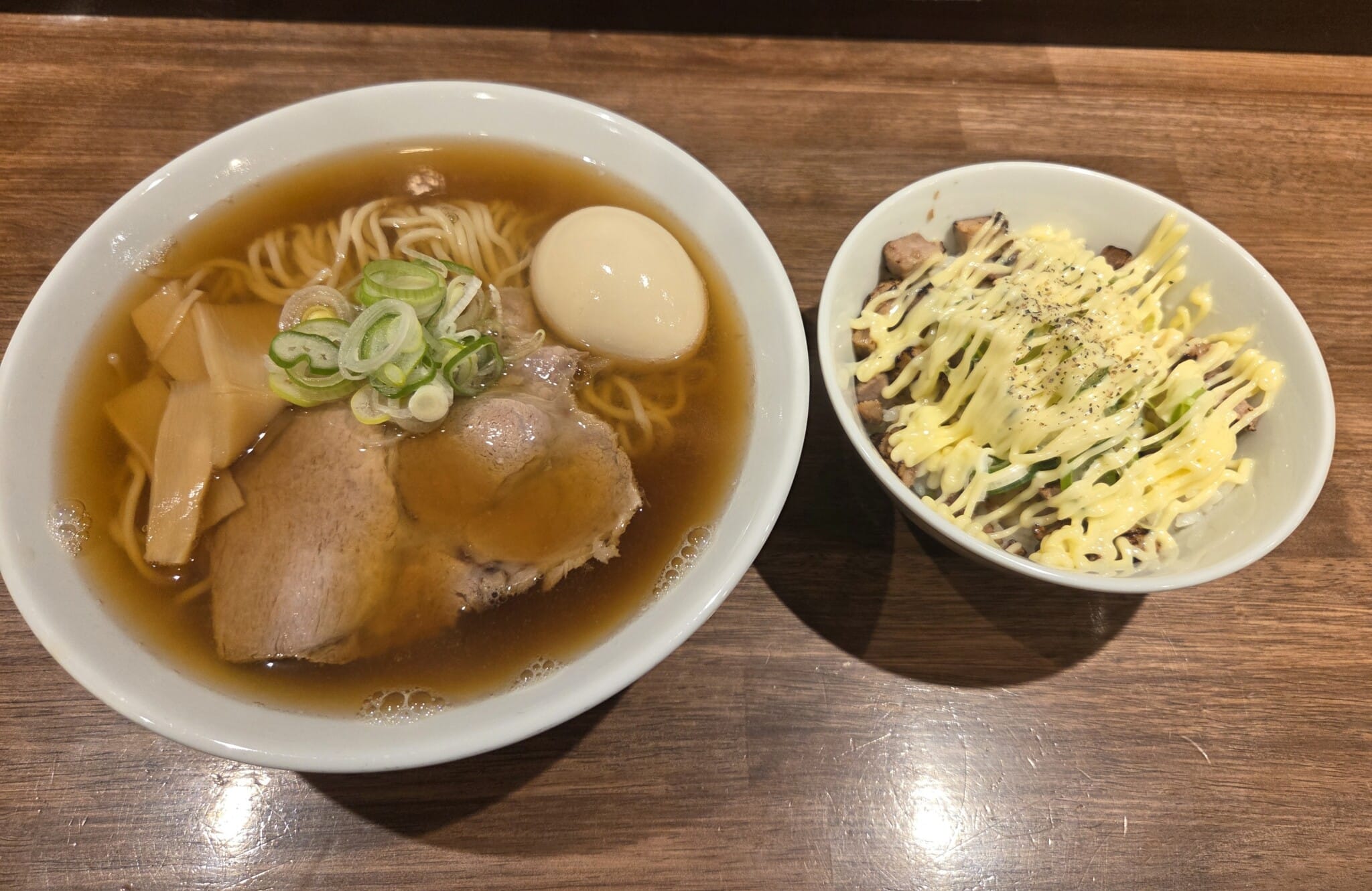 中華そば味玉トッピングの炙りチャーマヨ丼をチョイスしてました。